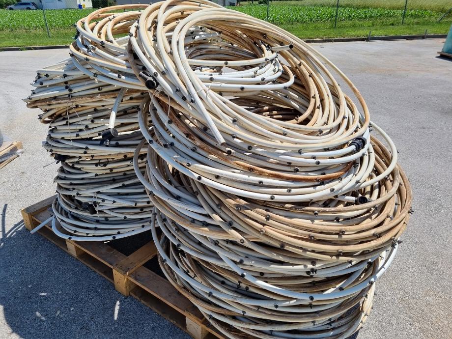 Prodajemo polovne cijevi za navodnjavanje Ø20 sa ugrađenim kapaljakama, autokompenzirajućim 4l/h (3 kom/m), spojnom cijevčicom duljine 50 cm, po 2 komada na svaku kapaljku i nosačem za cijev. Sve polovno, duljina cijevi 1330 m, kapaljka 3990 komada, spojne cijevi 3990 m i nosača cijevi 7980 kom. Cijena 0,60 €/m + pdv, Prodajemo za 20% od cijene novog.