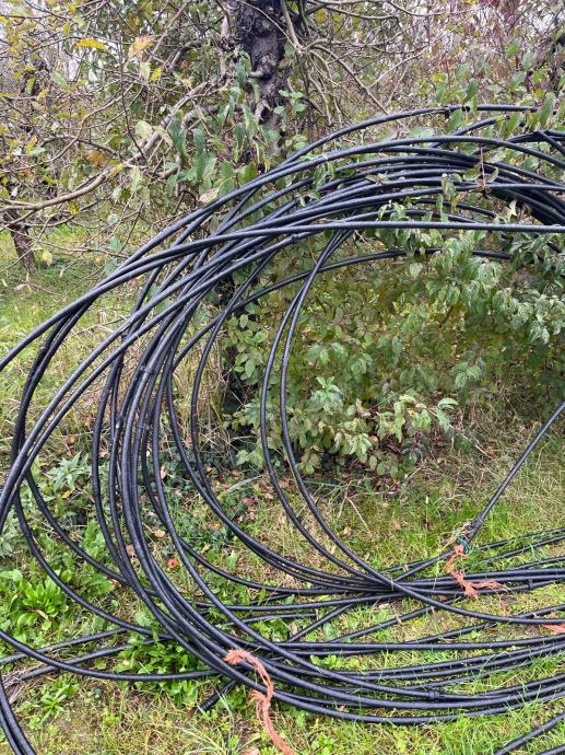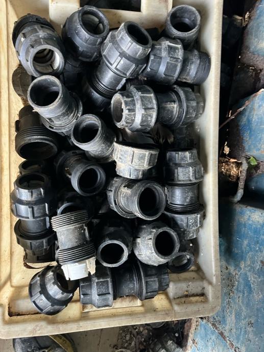 Nnavodnjavanje kap po kap fi 20 rupe na 0,5m/ 0,10 eura/dm; zaštita od mraza i navodnjavanje kišenjem R -24 metra na nosaču 3 metra - 10 eura komplet (3/4 cola) i okiten fi 50 i fi 40 s obujmicama 3/4 cola 0,30 eura/dm i spojnice fi 40/40 i 50/50