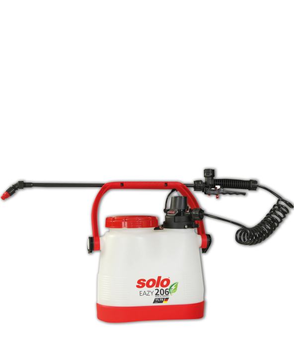 Prskalica akumulatorska SOLO EASY 206. Tiho, bez emisija: zaštitite svoje biljke s najsuvremenijom akumulatorskom prskalicom SOLO 206. Prskanje bez ručnog pumpanja uz konstantan tlak ubrizgavanja. Lagan, praktičan uređaj od 6 L. Veliki kapacitet baterije do 170 minuta rada uz samo dva sata punjenja. Praktična sklopiva ručka, naramenica i sa spiralnom cijevi. Robusna posuda s UV zaštitom i stabilnim postoljem posude. Ergonomski ručni ventil i nelomljiva šipka za raspršivanje.