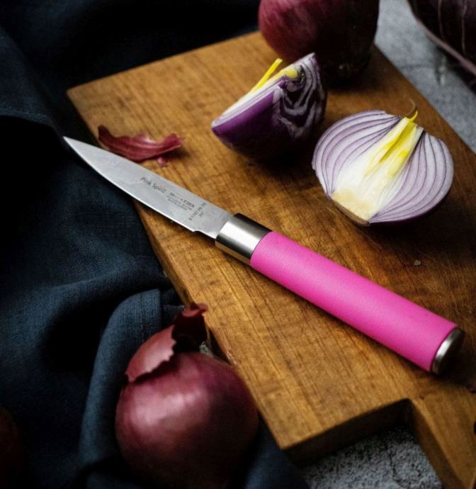Unesite boju u svoju kuhinju! Ružičasta verzija popularne serije Spirit unijet će boje i optimizam u vaš svakodnevni život. Jasan, ali upečatljiv dizajn učinit će vaše noževe Pink Spirit pravim privlačnim za oko. Gledamo na svijet otvorenih očiju i uvijek nas nadahnjuju svježi dojmovi i spoznaje za stvaranje novih ideja. “Pink Spirit” kombinira uobičajene karakteristike kvalitete s posebno skladno oblikovanom ručkom u briljantnoj ružičastoj boji koja vas jednostavno raspoloži i čak ima pozitivne asocijacije u učenjima Feng Shuija.