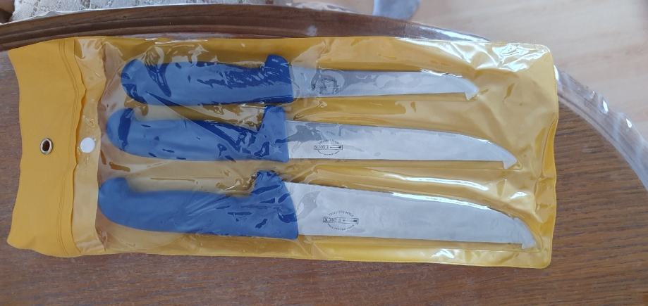 Dick set mesarskih noževa 3/1.Noževi su namjenjeni za rasjecanje i guljenje u mesarskoj industriji,1noz za otkoštavanje,2 ubodni nož,3 mesarski nož.Original Njemačka.Cijena za set je 30 eura.