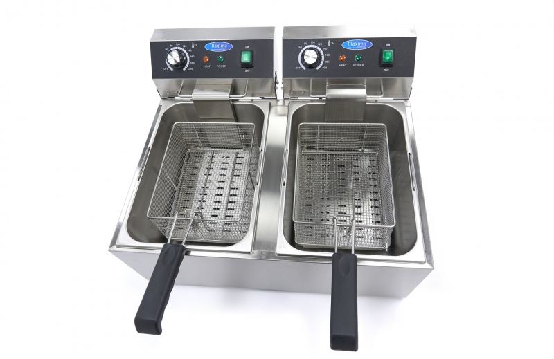 Električna friteza 2 x 11L pogodna za svakodnevnu upotrebu. Friteza ima 2 posude od po 11 litara, što je čini idealnom za pripremu grickalica u profesionalnim kuhinjama. Friteza od 2 x 11L lijepo je obrađena sa zaobljenim uglovima i opremljena poklopcima koji sprječavaju prskanje ulja. Zajedno s ergonomskim dizajnom friteze, to osigurava ugodan i siguran rad. Kućište od nehrđajućeg čelika, posuda i košara lako se čiste. Sa svojih 22 litre friteza je pogodna za prženje raznih vrsta hrane.