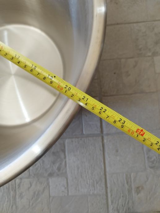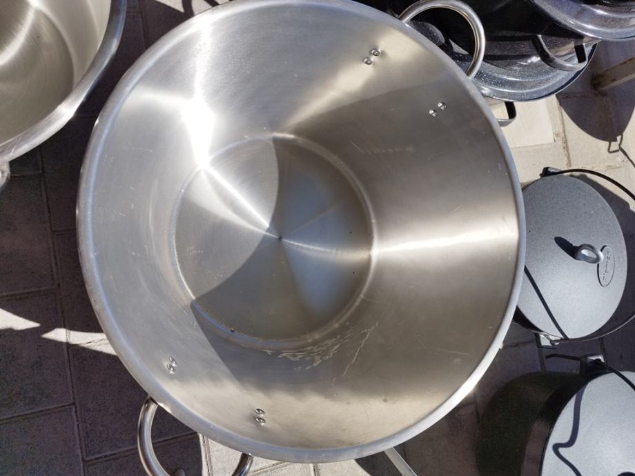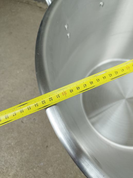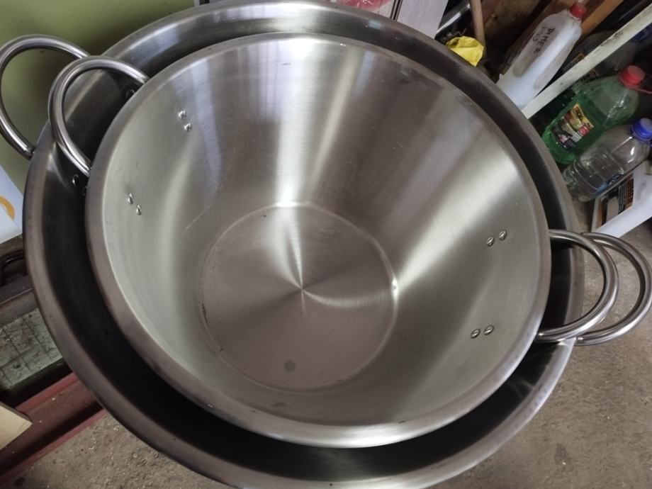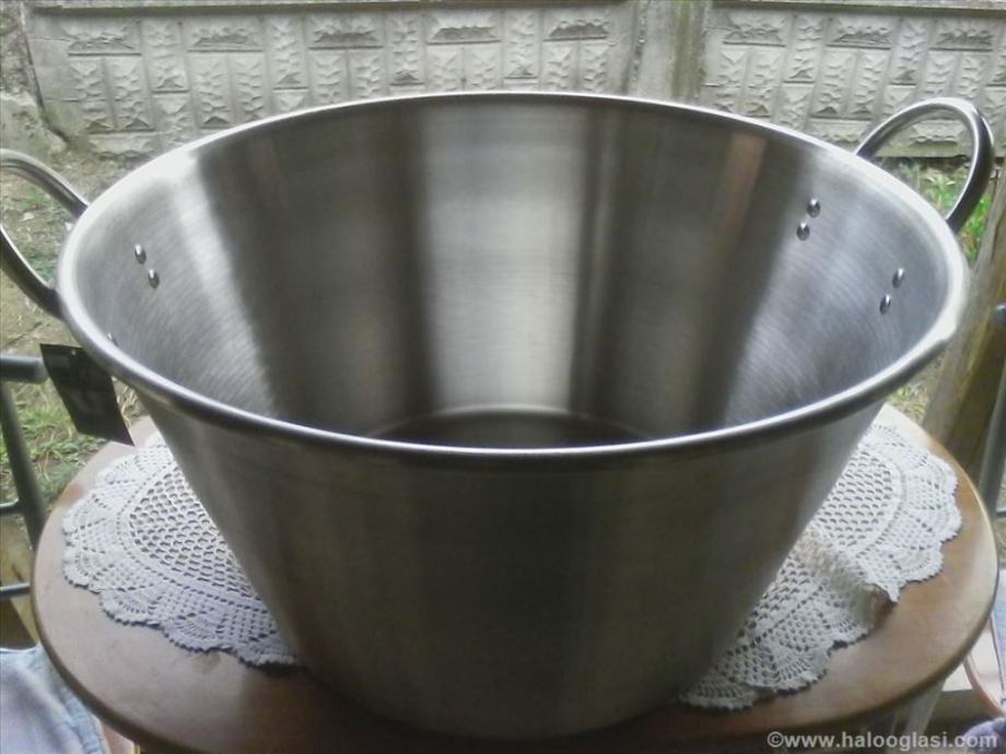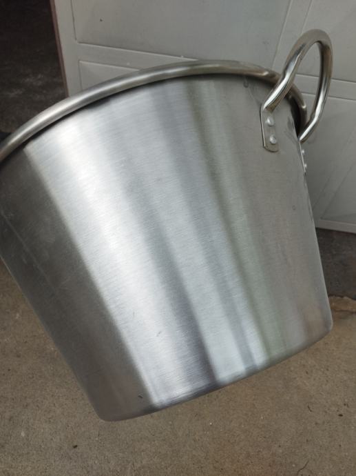 Prodajem inox kotao-lonac-posuda zapremine od 45 litara. Dimenzije posude su visina 32 cm, promjer u gornjem dijelu 52 cm, u donjem dijelu 33 cm. Dno je ravno, materijal prešani i brušeni inox, prehrambeni nemagnetični, debljine 1,5 mm, težina 6 kg. Pogodno za razna kuhanja na otvorenom plamenu, topljenje čvaraka kao i za izradu mješalice za meso. Moguća dostava.