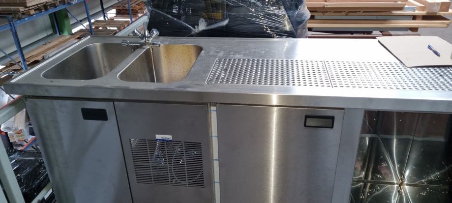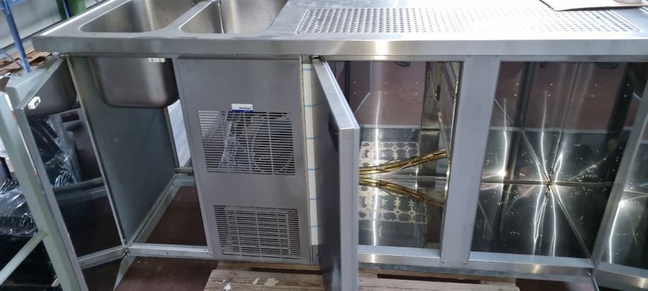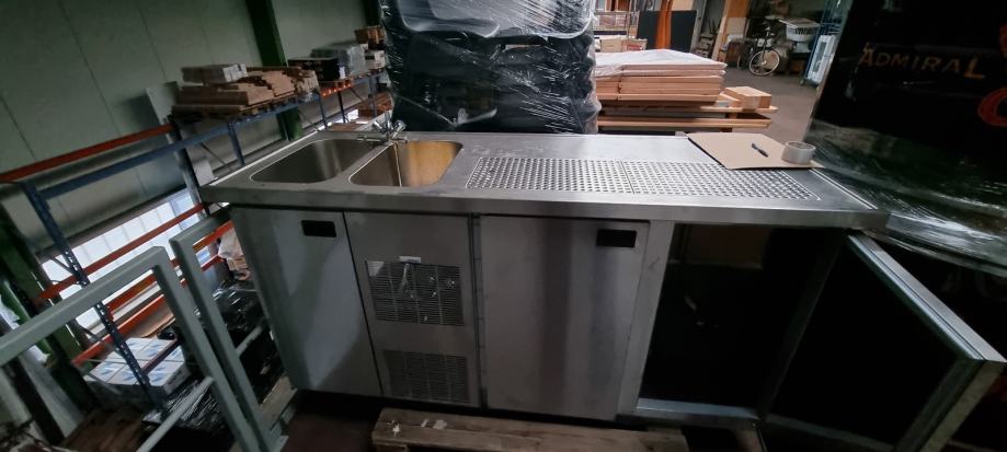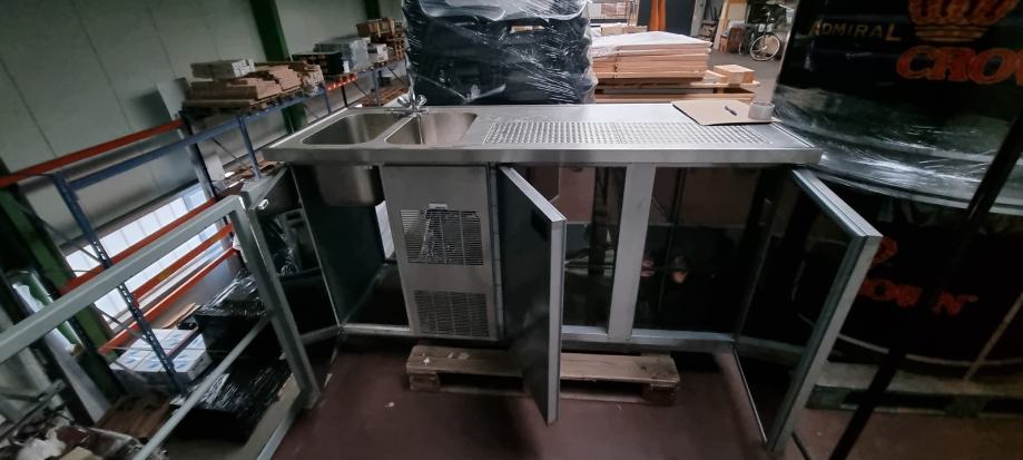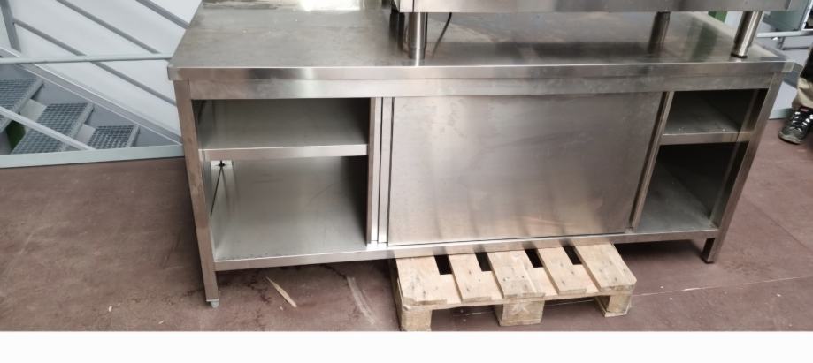 Kuhinja za restorane sa sudoperom i rashladnim komorama. Dva šanka ili elementa od inoxa dužine svaki 194 x 70 cm . Cijena 2.700 eura ili po dogovoru. Cijena jednog novog pogledajte u fotografijama.