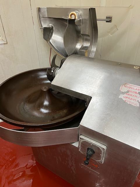 Mesarska oprema za preradu mesa. Kuter 65 litara, Kramer-Grebe. Odličan robustan i težak stroj koji je malo radio. Cijeli inox, osim zdjele. Elektro motor potrebno vitlati. Za ozbiljnog kupca cijena po dogovoru.