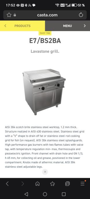 Prodajem profesionalni plinski lava grill CASTA E7/BS2BA, podni model.