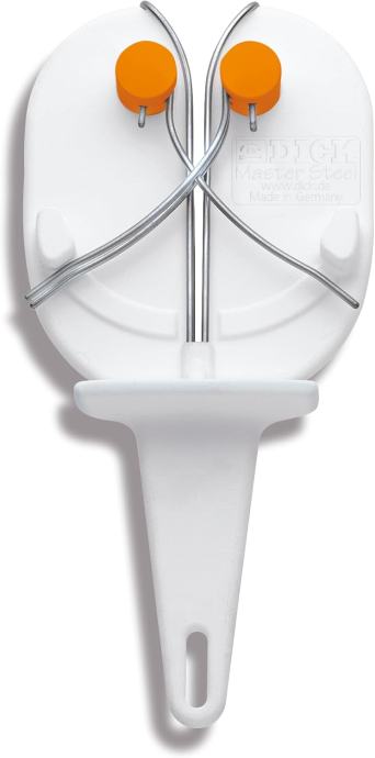 Zaštitne šipke u jedinici za oštrenje vode nož sigurno i do optimalnog učinka. Imaju dodatni učinak poliranja bez oštećenja oštrice noža kada se provuče. Još jedna prednost zaštitnih šipki je ta da plastične ostatke s oštrila za noževe drže dalje od mesa. Udubljeni rukohvati na stražnjoj strani Master Steel-a osiguravaju čvrst stisak čak i kada nosite rukavice. Master Steel se može koristiti kao ručni uređaj ili pričvrstiti na stol u držaču.