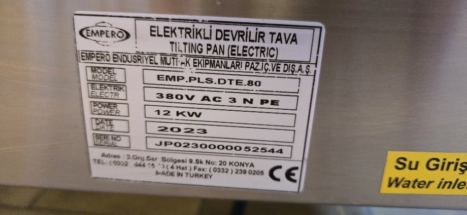 Električnu nagibnu tavu, kapaciteta 80 litara, dim: 800x900x875mm, termostatska regulacija, u upotrebi samo 3 meseca, bez znakova upotrebe, ko nova, serviski pregledana, prodajemo. Godina proizvodnje 2023. Mogučnost slanja Intereuropom na adresu kupca. Cena 2750 eur.