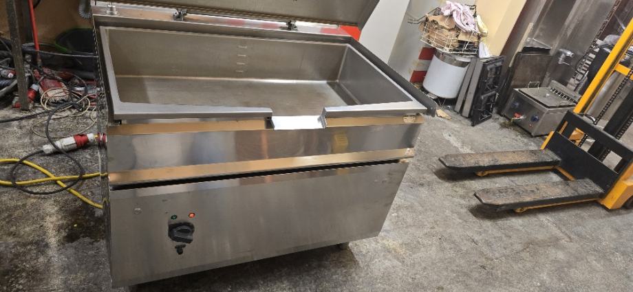 Vrhunsku Električnu nagibnu tavu, kapaciteta 120 litara, dim: 1200x900x875mm, termostatska regulacija, avtomatsko dizanje putem elektromotora, punjenje vodom putem elektroventila, , ko nova, serviski pregledana, prodajemo. Mogučnost slanja Intereuropom na adresu kupca. Cena samo 3990 eur. ( cena nove 13500 eur )
