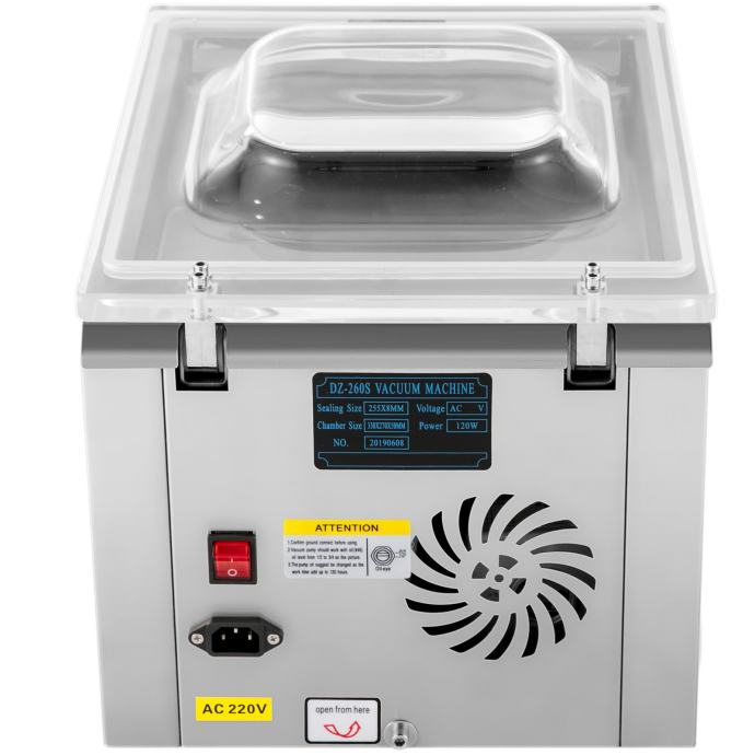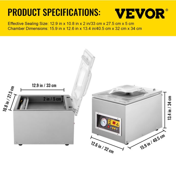 【VELIKI VAKUUMSKI UČINAK】- Snaga motora: 0,12 KW; Učinkovita veličina brtvljenja (D x Š): 10" x 0,24" (255 mm x 6 mm); Brzina vakuumske pumpe: 3 m³/h; Dimenzije komore: 12,9" x 10,8" x 2" (330 x 275 x 50 mm). Fino usisavanje i brtvljenje.