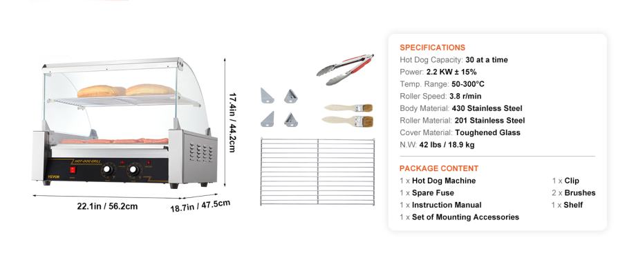 Valjak za hrenovke može se pohvaliti komercijalnom rešetkom od nehrđajućeg čelika i ETL-certificiranom vrhunskom kvalitetom. 11 neprianjajućih valjaka može kuhati do 30 hrenovki odjednom. To je izbor broj 1 za štandove s hranom, obiteljske zabave i roštilje. Dizajniran za sve vrste hrenovki, kobasica, mesnih okruglica itd.