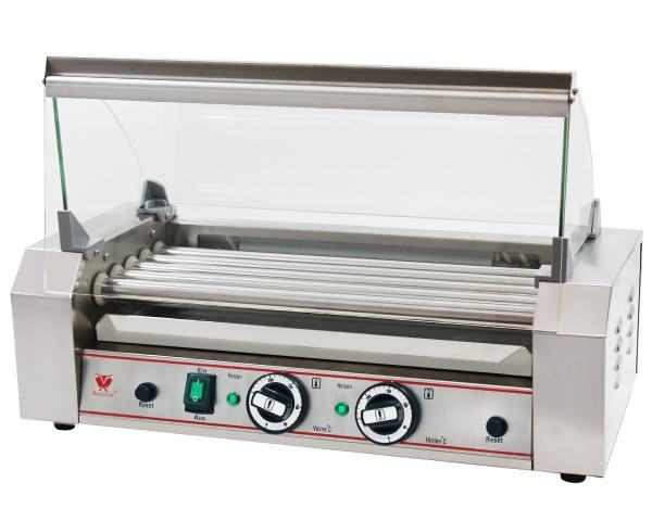 Aparat za hrenovke za pečenje hrenovki pomoću rotirajućih valjaka. Moderan dizajn uklapa se u svaki ambijent. Kućište i valjci za grijanje izrađeni su od nehrđajućeg čelika. Aparat za hrenovke također je opremljen ladicom za odvod masnoće i zaštitnom staklenom vitrinom.