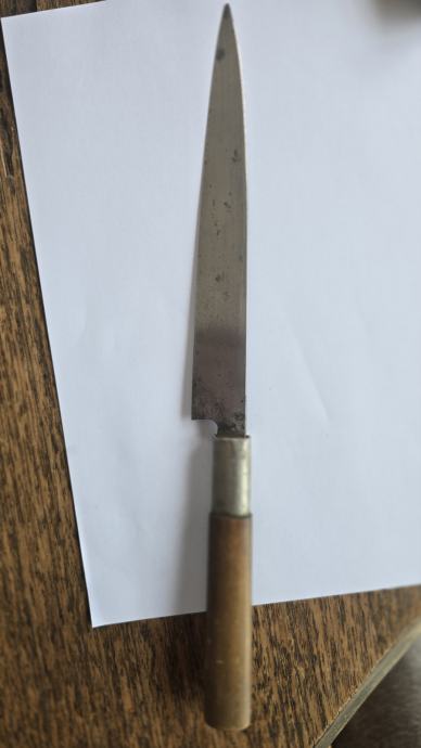 Stanje: Nož je rabljen s autentičnom patinom. Oštrica je zdrava, drška čvrsta. Potrebno je standardno oštrenje kako bi zasjao u punom kapacitetu.