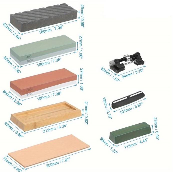 oštrilo VELIKI SET KAMENA ZA OŠTRENJE– cijeli set ima čak 9 dijelova. Vodeni kamen se koristi za ručno oštrenje reznih rubova noževa, mačeva, noževi , sječiva te i alata za obradu drveta. Naši vodeni kameni izrađeni su od prirodnog kamena!.