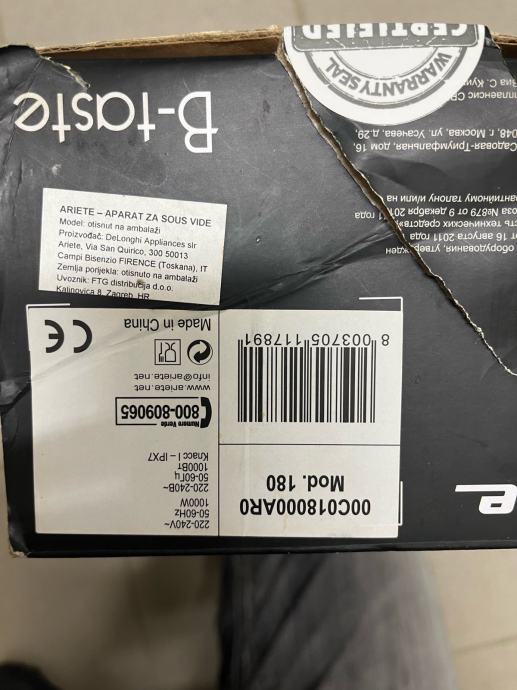 Prodajem rabljeni sous vide aparat Ariete B-taste, model 180. Uređaj se uranja u posudu s vodom i precizno održava željenu temperaturu, a dolazi s kabelom za napajanje i svom originalnom opremom.