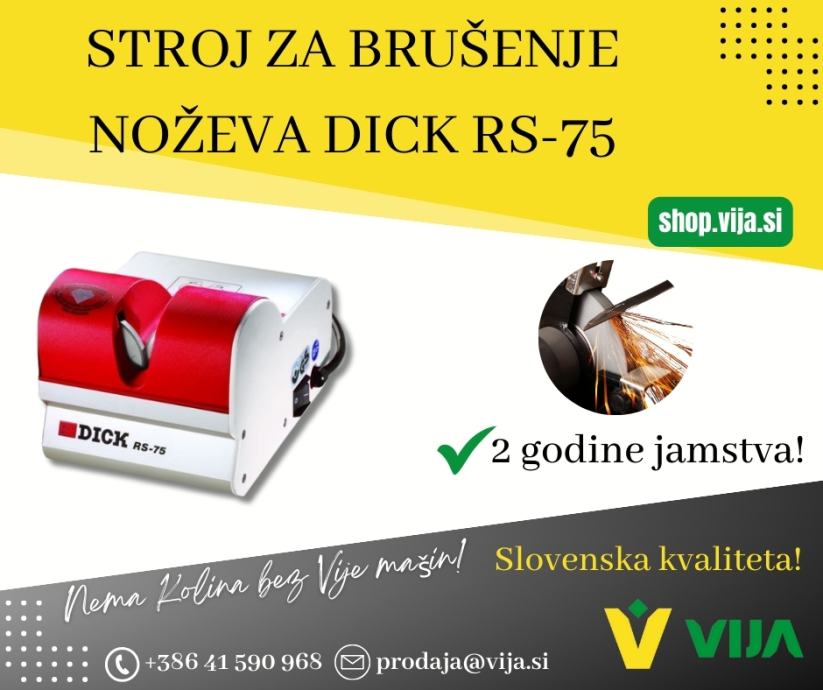 Univerzalni brusni strojček za vzdrževanje ostrine nožev v vašem poslu (mesnica, restavracija, delikatesa, kuhinja, koline in lovske družine ...). Brusilni stroj za vzdrževanje je nujna oprema vsake resne delikatese ali mesnice v kolikor le ta ne poseduje večjega stroja za brušenje nožev. Za gladko rezanje brez odvečnega naprezanja uporabite enostaven stroj brušenje nožev DICK RS 75.