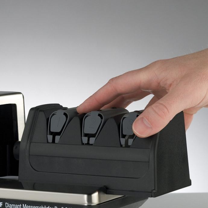 Dijamantni oštrač noževa - brusilica GRAEF 210 0 PROFESSIONAL namijenjena je za profesionalnu upotrebu. Noževi se mogu oštriti s glatkim ili nazubljenim oštricama. Konusno oštrenje/brušenje sa 100% dijamantnim brusnim pločama i diskom za poliranje.