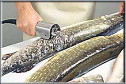 Uređaj za skidanje ljuske riba, siguran, pogodan i za profesionalnu uporabu u preradi i pripremi ribe.