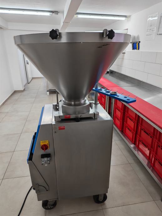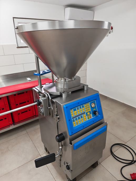 Prodaje se vakum punilica Rex rvf 55 korištena za kobasice i kulen. Punilica je kao nova servisirana od ovlaštenog servisa i mirni ste 1000 radnih sati. Punilica ima ruku za frkanje i porcionoranje na gram. Kapacitet punilice je 150 litara ili 120kg mesa. Brzinu punjenja,gramažu proizvoda,pauzu između punjenja i broj frkanja birate sami. Punilica posjeduje komunikaciju ako će je spajati na klipsericu ili traku. Punilica se prodaje isključivo jer se kupuje nova preko Eu fonda i u potpunosti je ispravna. Korištena je isključivo kod nas i servisirana redovno. Posjedujemo i knjigu koja dolazi uz nju za programiranje,kataloške brojeve dijelova ako je potrebno i sve ostalo. Kontakt broj 0977010717 ili 0914414141