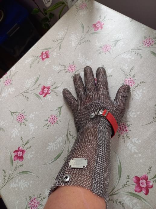 Prodajem zastitnu rukavicu za mesnice kuhinje,napravljena od nehrdajuceg materijala,koristena par puta ,ali ispravna.Moguce slanje postom.