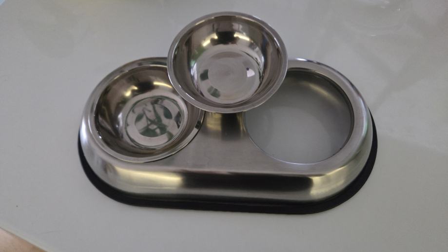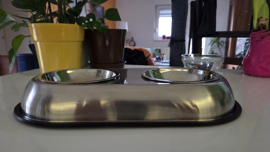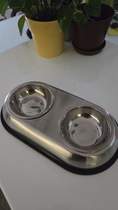 Prodajem nekorištenu dvostruku metalnu zdjelu za mačke ili malene pse.