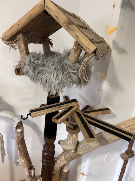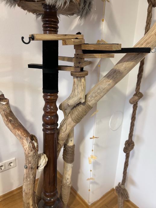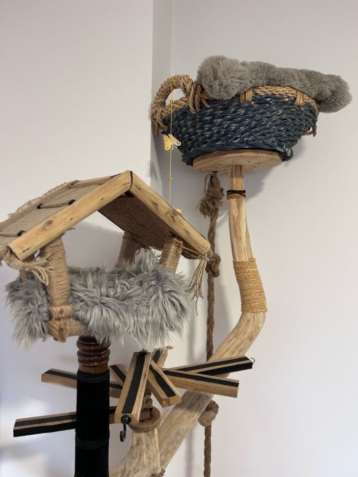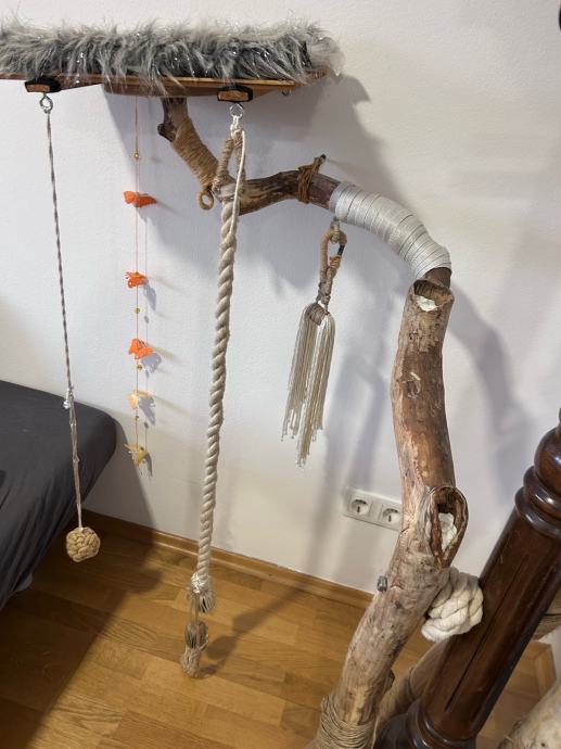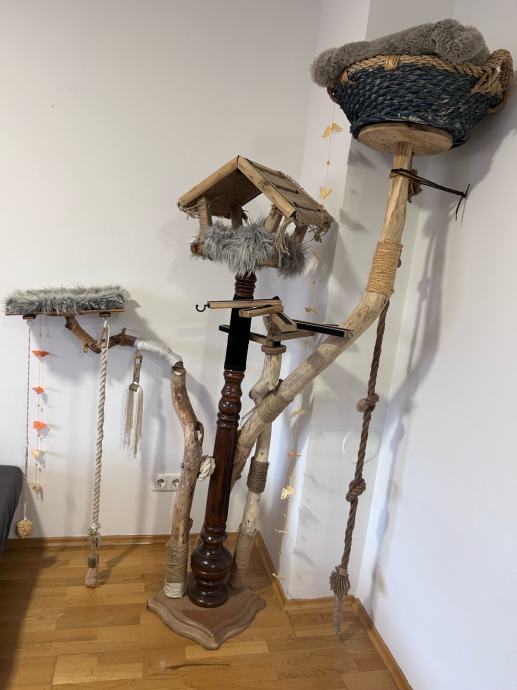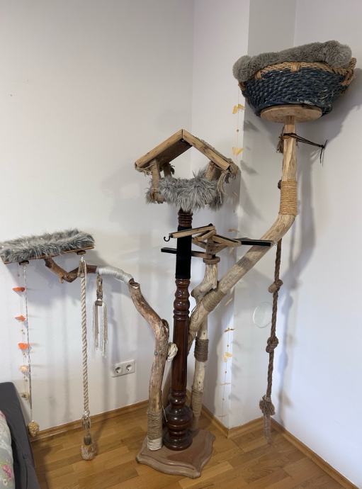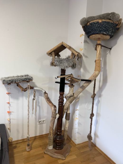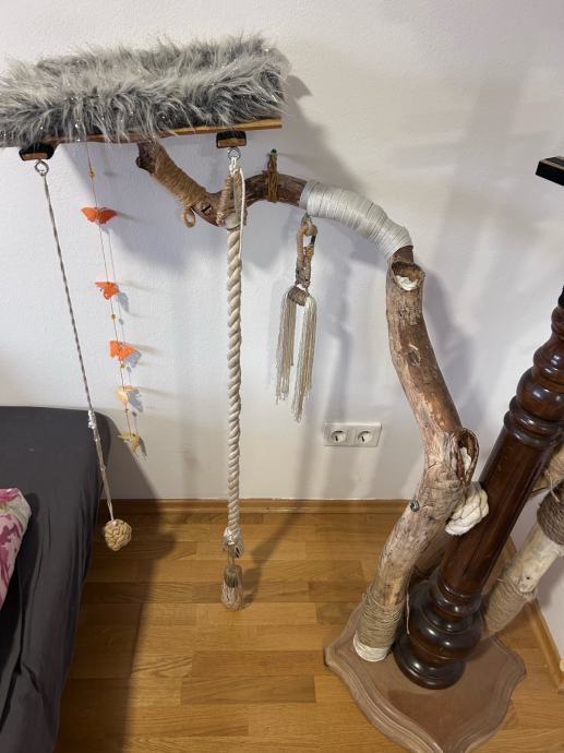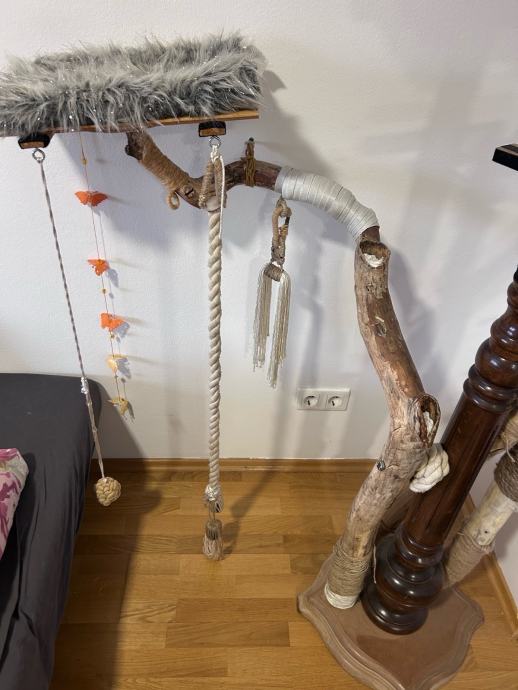 Prodajem grebalicu za mačke. Ručni rad, tri vrste drva. Grebalica je posebno rađena po mojem dizajnu. Nažalost moj mačak nije zainteresiran i ne koristi grebalicu. Materijali poput špagica su posebno birani materijali koje mačke vole. Male stepenice se mogu rotirati, te se sama grebalica može rastaviti. Na raznim dijelovima ima različitih špaga namjenje ze grebanje i igranje. Estetski lijepo izgleda te će dobro izgledati u svakom prostoru. Visina grebalice je nešto manja od dva metra, a širina 150cm, 200x150. Moguća je dostava u Zagreb i okolicu. Cijena je 150€ - ali cijena nije fiksna