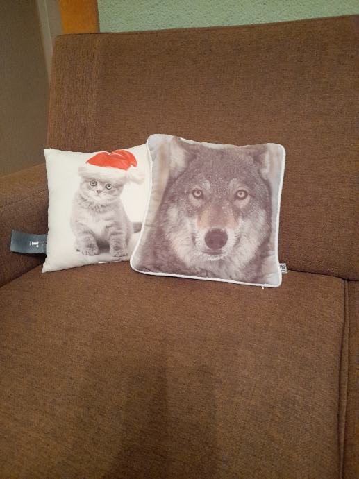 Prodajem 2 jastucica za kucne ljubimce dimenzije 29x29 cm, koristeni kratko na kaucu, jedna navlaka je na patent zatvarac, cijena za oba je 3 € plus trosak slanja tiskom 3 € ako preuzimanje nije na adresi, inf na tel 035 260 202