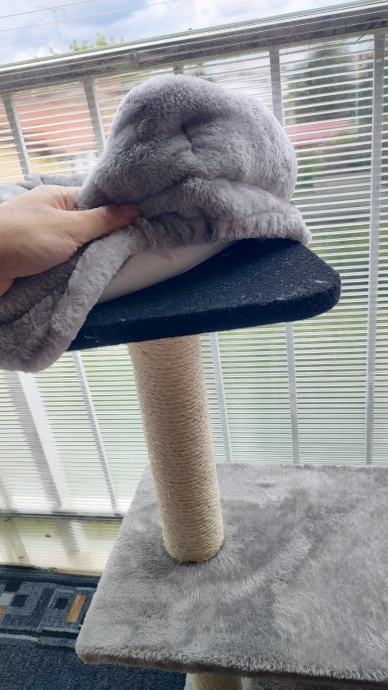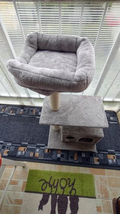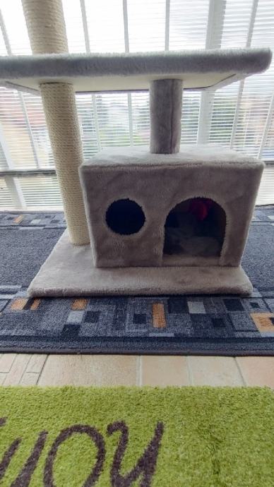 Stabilna kuća sa grebalicom, ležištem i promatračnicom za mace do 6 kg tjelesne mase.