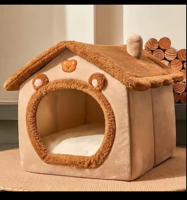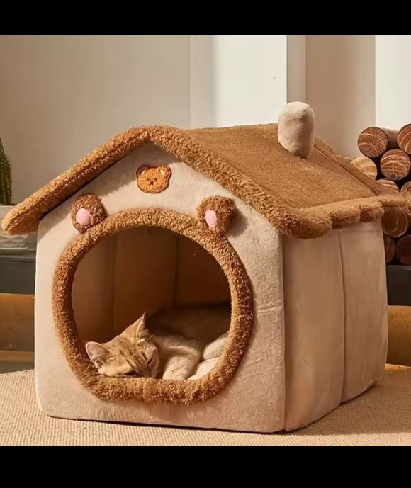 Nova,nekorištena kućica za mačke.S odvojivim i perivim jastukom.Krov kućice se također lako skida,pomoću patent zatvarača,tako da ju je lako očistiti po potrebi.Dimenzije kućice su 49x38x46.Pogodna je i za manjeg psića.