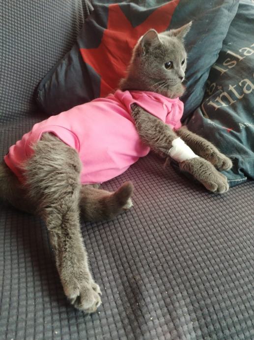 Prodajem kratko korišten i očuvan rozi body za mačke, idealan za zaštitu rana nakon operacije ili ozljeda. Udobna i praktična alternativa veterinarskoj ogrlici, sprječava lizanje i grebanje, a omogućuje slobodno kretanje i korištenje wc-a.