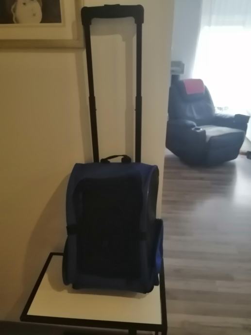 Ruksak se moze koristiti kao torba za leda ili kao putna torba sa ruckama na kotacice koje se mogu podesavati, ovisno o svrhi. Izvrsna za transport zivotinja zbog prozracnosti i lakog koristenja ( zivotinja ne pati te ima dovoljno zraka, svjetla i prostora. Nova takva k9lica kostaju 113 eura, cijena mojih je 40 eura.