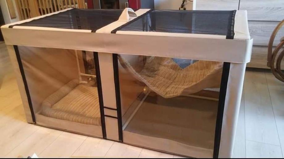 Prodajem surdi-kućuca- kavez, dupli (mogućnost dva zasebno, ima pregradu ili jedan veliki). Gratis viseća ležaljka i jastuk. Nikad korišteno! Dimenzije 150x75. Mogućnost sklapanja i nošenja u torbi. Cijena 400 eura.
