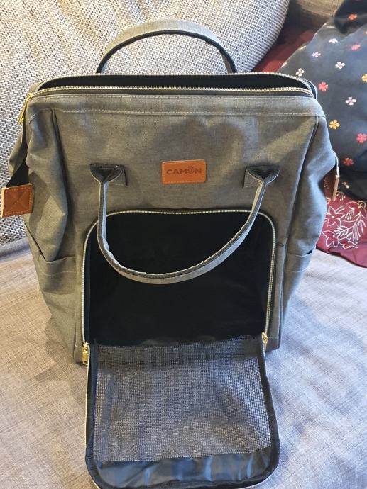 Torba za mačku Camon naprtnjača nova dimenzije 50x32x31 sa ulaznim vratima sa strane i odzgora. Zgodna za šetati macu po vani. Moze se nositi i u ruci. Gratis zdjelice za vodu i hranu.