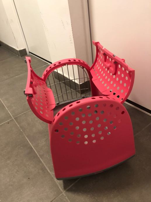 Prodaje se transporter za macke i manje pse roze boje dimenzija D47xV35xŠ33cm. Transporter je ocuvan i u odlicnom stanju, malo koristen. Dvostruko otvaranje vrata (krova i bocne strane). Mogucnost dostave na podrucja grada Zagreba prema dogovoru.