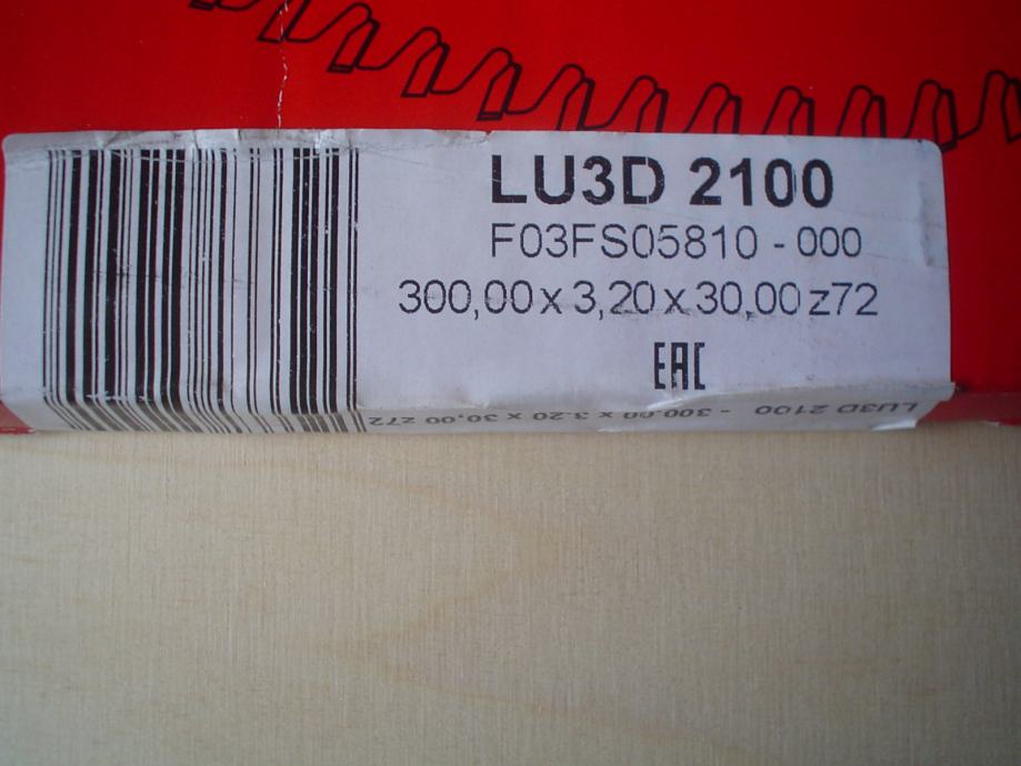 Promjer pile 300 mm x 3,2/2,2 mm x 30 mm, Z= 72 HW, trapezno - ravni oblik zuba je posebno namijenjen za krojenje iverala i pločastih materijala, n max 6500 rpm, KNL otvori za prihvat pile - odgovara svim europskim strojevima.