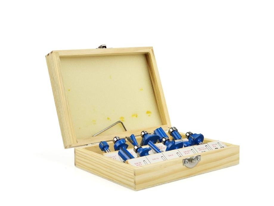 Set od 12 oblikovanih rezača za drvo koji omogućuju preciznu obradu materijala. HSS oštrice od brzoreznog čelika omogućuju korištenje rezača za obradu punog drva, iverice, MDF-a i drugih materijala na bazi drva. Korišteni ležajevi smanjuju otpor kotrljanja, zbog čega su rezači idealni za oblikovanje okruglih materijala. Sve je stavljeno u praktičan drveni kofer, gdje svaki rezač ima svoje označeno mjesto.