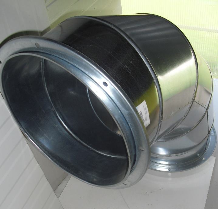 Pocinčana koljena sa prirubnicama sa kutom od 90°. Koljeno je napravljeno od segmenata koje omogućava da se rezanjem u dijelu pojedinog segmenata i savijanjem ruba dobije bilo koji međukut manji od 90°.
