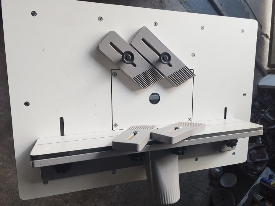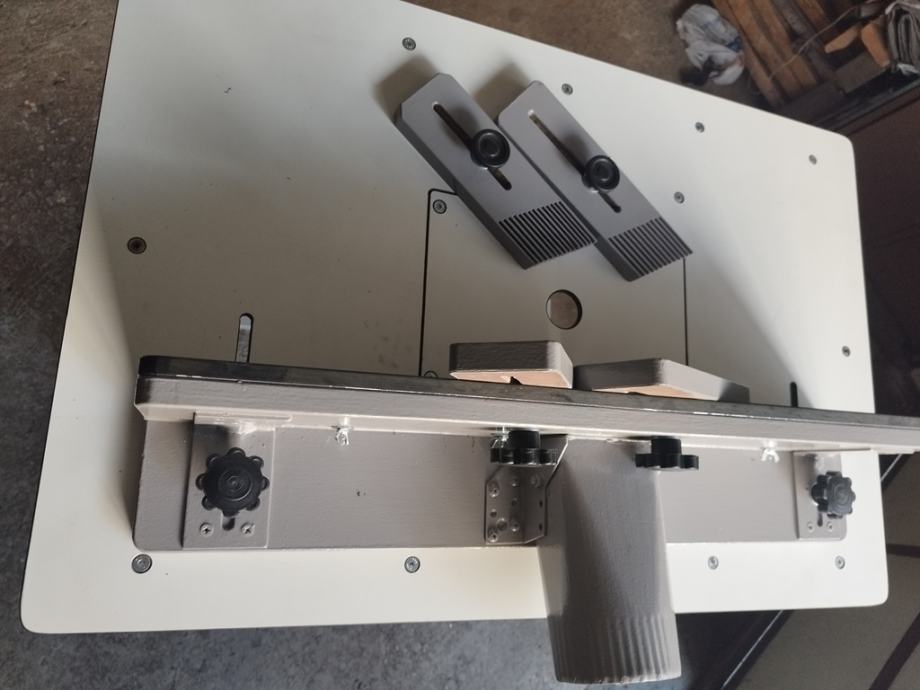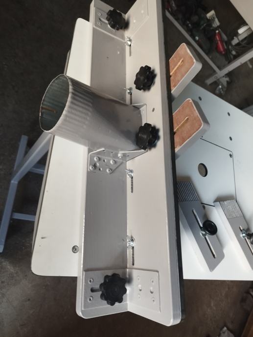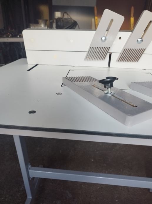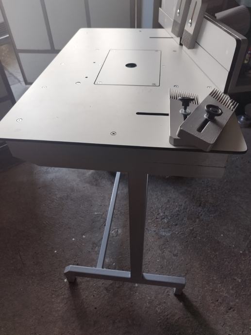 Prodajem novi stol za ručnu glodalicu. Na stol se montira bilo koja ručna glodalica, čime se ručna glodalica pretvara u fiksnu, vertikalnu. Regulacija visine glodala se vrši ispod ploče na samoj glodalici. Radne površine su napravljene od kompakt ploče izuzetne otpornosti na habanje. Stol ima okretne kotače sa kočnicom tako da se vrlo lako može premještati. Firung se vrlo lako postavlja i skida, a ploče na firungu su pomične radi regulacije otvora za glodalo.