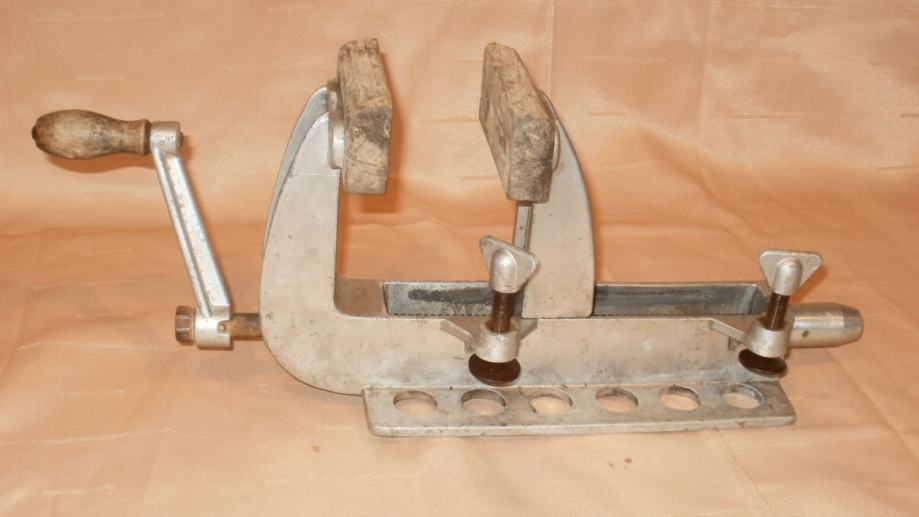 ODLIČNA MALI STOLARSKI ŠKRIPAC KOJI SE MONTIRA NA STOL KAD SE RADI NEŠTO NA TERENU. NIKAKVO SLANJE. TREBALO BI SAMO PROMJENITI ONA DVA DRVENA KOMADA KOJI STIŠČU.