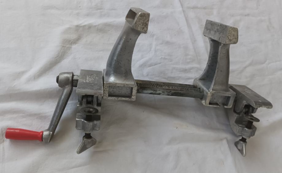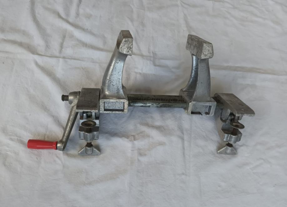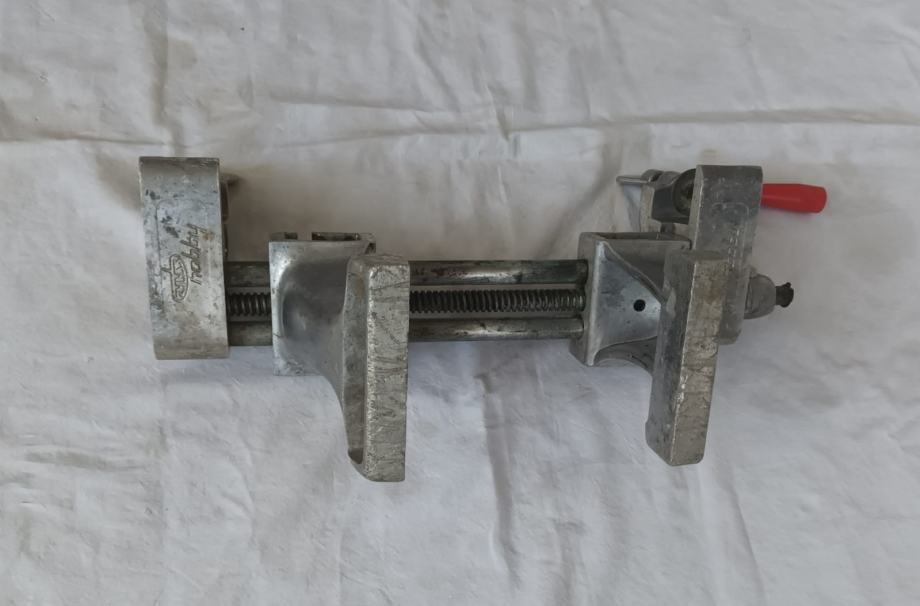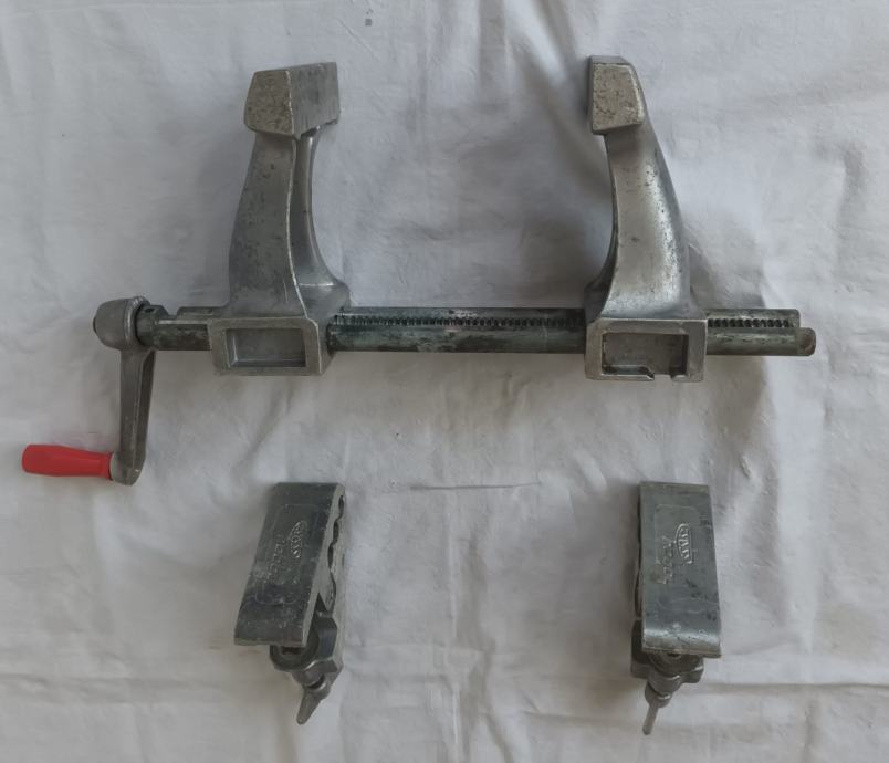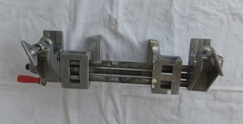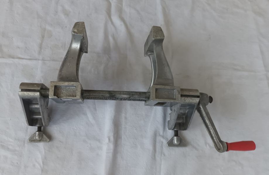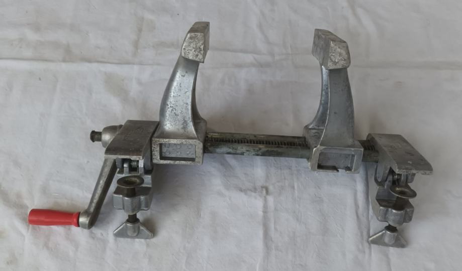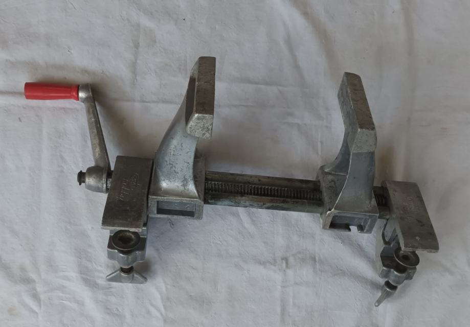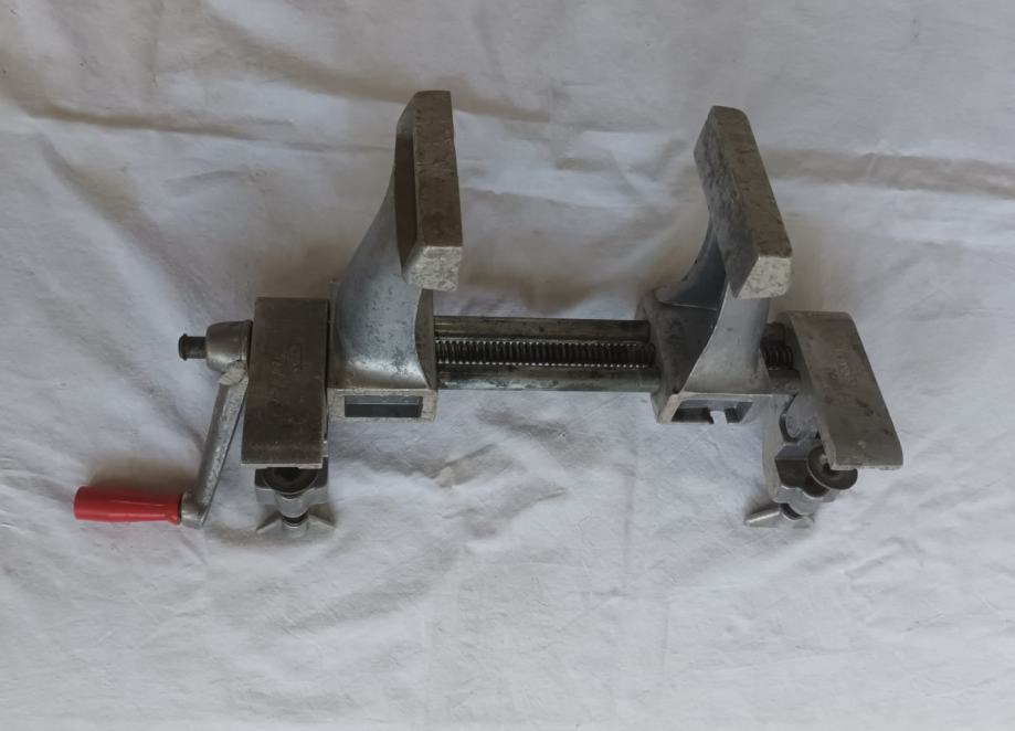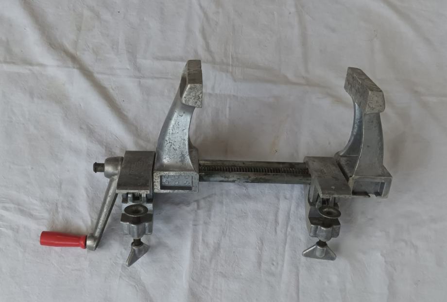 Stolarska stega sa slika stanje odlično vidljivo na slikama. Jednostavno se montira na radni stol, širina pakni 100 mm, otvaranje do 200 mm.
