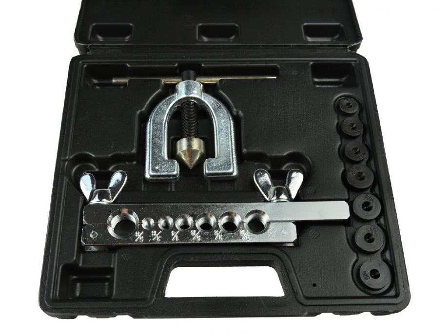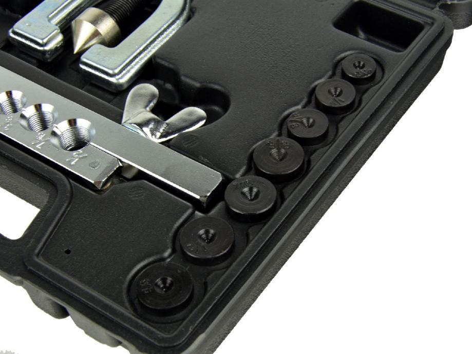 Komplet za zaradu kočnica i dovoda goriva. Pogodan je za rezanje i proširenje bakrenih, mjedenih i aluminijskih cijevi i kabela sa stijenkama do 1 mm debljine.