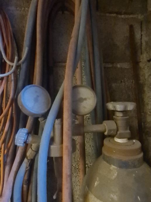 Boce za autogeno zavarivanje, crijeva, manometri, skoro pune.