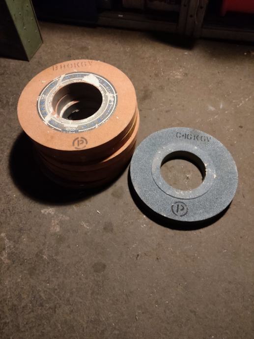 Prodajem 6 brusnih ploča fi 300 sa rupom 127,od kojih je 5 komada ,širine 30 mm,a zelena je širina 35 mm.Ploče nisu upotrebljavane,ali su starije proizvodnje i nalaze se u suhom prostoru.Za sve tražim 100e.