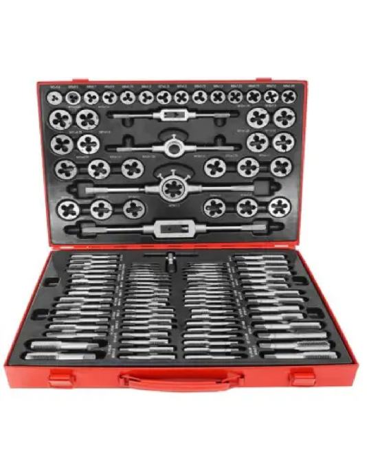 Set od 110 nareznica i matrica. Izrađen od najkvalitetnijeg kaljenog čelika, dobro će raditi u svakoj radionici i garaži. Komplet se koristi za popravak svih vrsta navojnih spojeva u većini materijala. Zahvaljujući velikom broju elemenata, set je vrlo univerzalan.