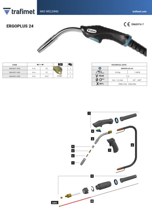 Gorionik polikabel Trafimet MIG TORCIA ErgoPlus 24/4m(Euro) MA4201-040