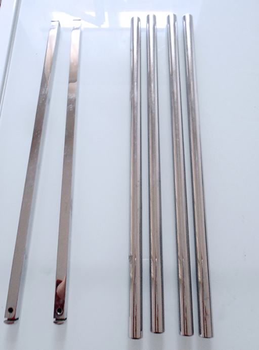 Inox šipke, većina sa navojem, dimenzije su na prvoj fotografiji.... 2 profila su četverokutna a ostali okrugli... duže po 4 eura kom. a kraće po 3 eura komad. (4 okrugle duge su prodane a kraćih je ostalo 8 kom.)