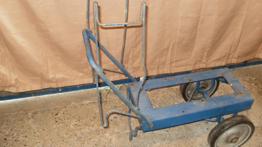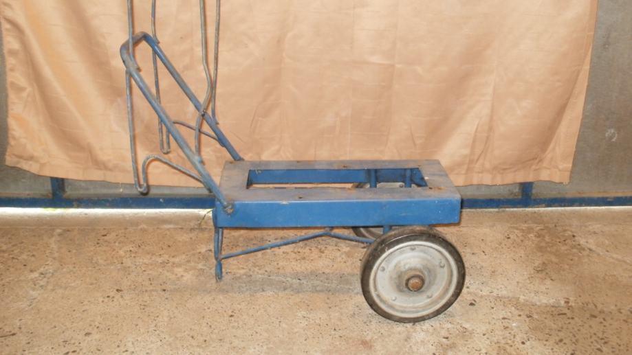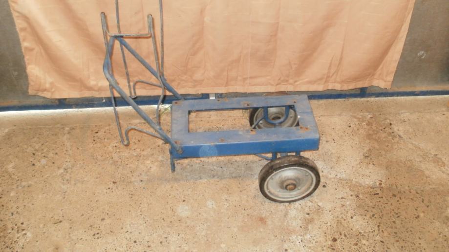 ČVRSTA I JAKA KOLICA ZA APARAT ZA VARENJE I ONIH NAJTEŽIH (ONIH STARIH GORENJE KIČMOLOMACA). PROMJER TOČKOVA JE 20 cm I IMAJU METALNU FELGU. NE ZNAM DALI TOČOVI IMAJU LEŽAJEVE ALI SE LAGANO OKREČU. NA RUČKI ZA VUČENJE SU DODANE ŠIPKE ZA SMOTAT KABLOVE. NIKAKVO SLANJE.