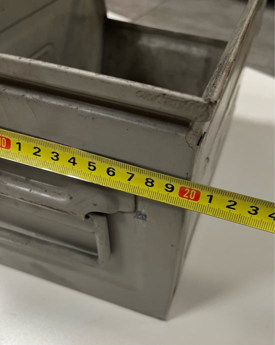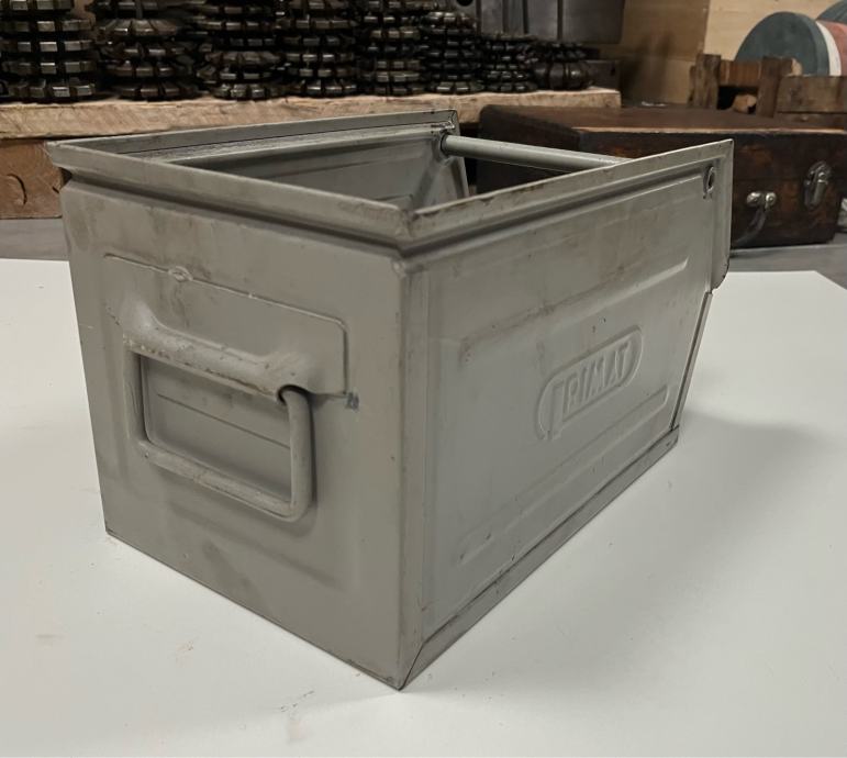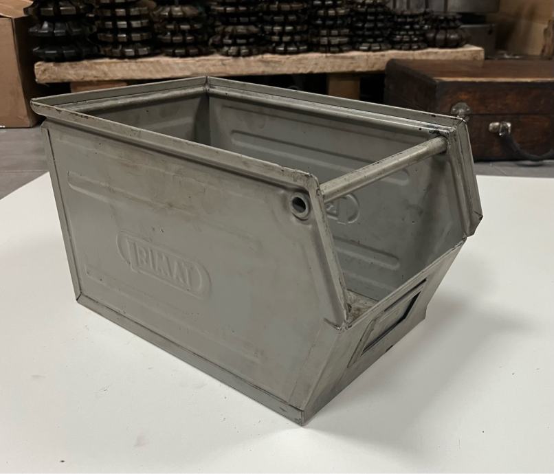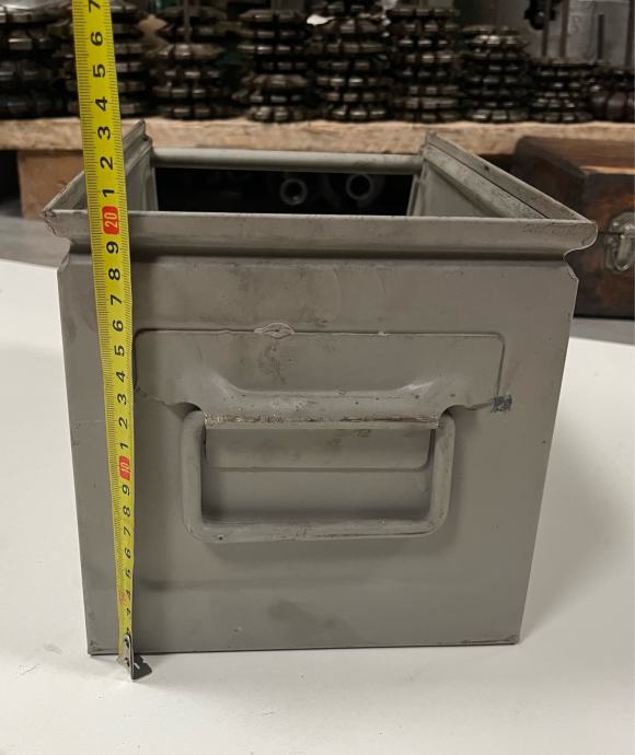 Jake limene / željezne kutije za alat i dijelove, mogu se slagati jedna na drugu, imaju uložak za karticu i 2 ručke za nositi. Ima više komada u istim dimenzijama. Dimenzije prikazane na fotografijama
