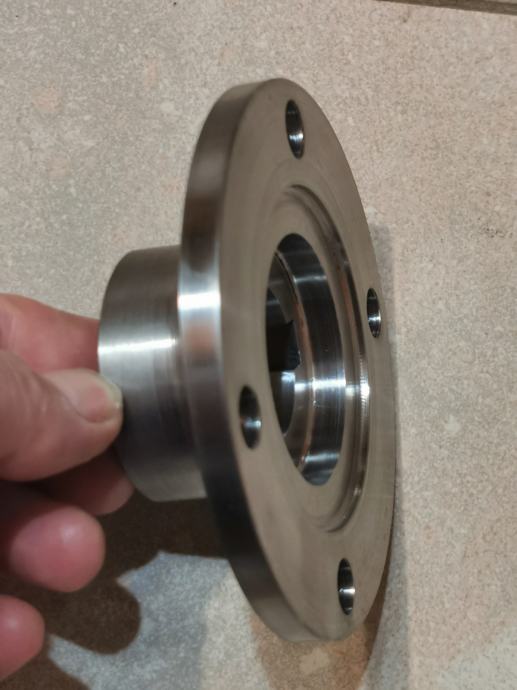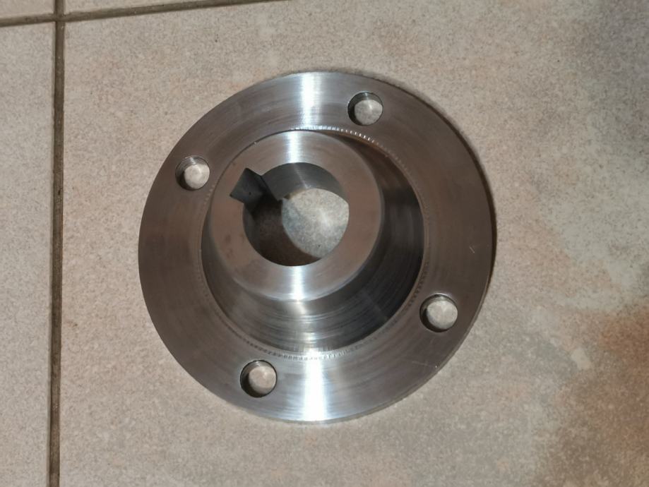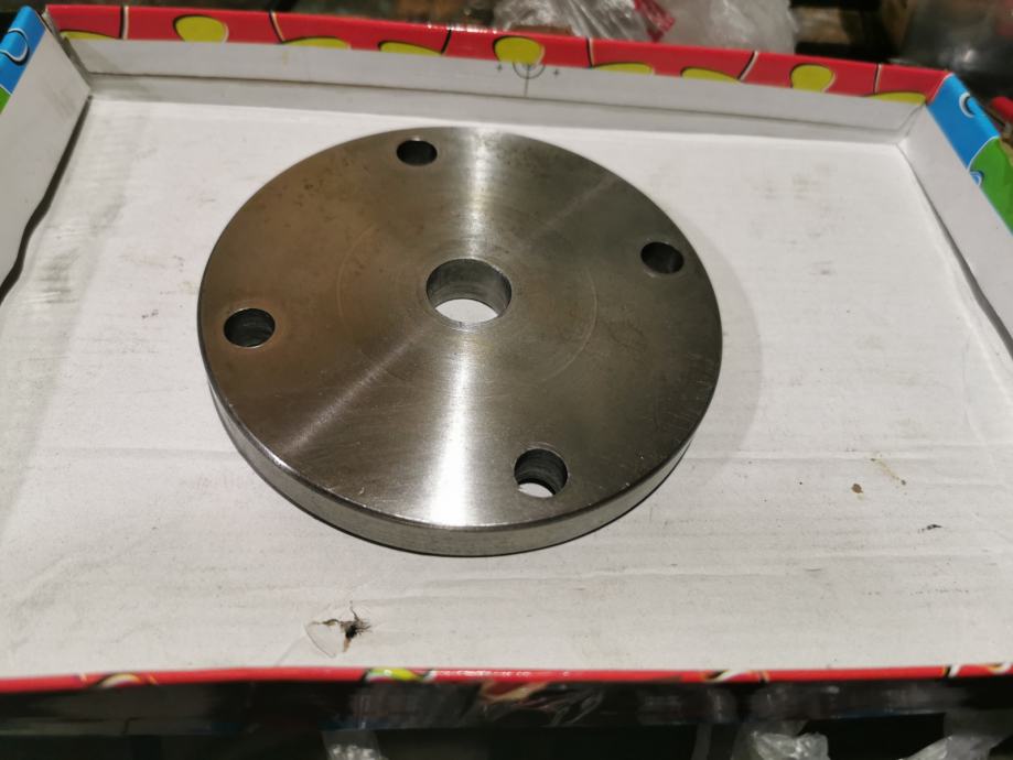 Druga prirubnica od inoxa promjera 115mm, veći utor 72 a manji 52mm, rupa za osovinu 32,5mm, prorez za kajlu 10mm, cijena 120kn.