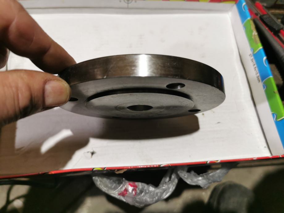 Prva prirubnica promjera 125mm, centralna rupa promjera 20mm, promjer izbočenja 82mm , razmak dijagonalno od centra do centra rupe 100mm, cijena 100kn.
